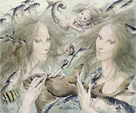 シレーヌとは、ギリシャ神話に出てくる海の怪物。美声で歌って船乗りの心を狂わせ、船を難破させる。ぼうぼうに伸びた髪、美しいが、どこかシレーヌ2人の表情には死の影も漂う。