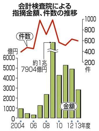 税の無駄遣い 595件、2831億円 検査院13年度報告