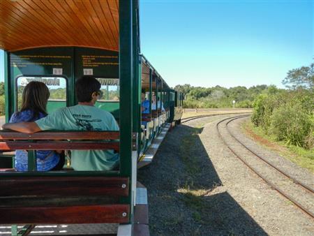 園内を移動する専用の2階建てバスに乗車し、鬱蒼(うっそう)と茂る周辺の緑を眺めながら整備が行き届いた道路を走る。園内では他にもカヌーやサイクリングなどさまざまなアクティビティーを体験でき、所々に看板が立っている。