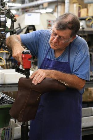 「革はネブラスカ州など米国産のみ。近くに革なめし工場を持ち、自社で全工程を扱うので、高品質かつリーズナブルな価格が実現できます」とオーナーのビル・スウィージーさん(61)。ミズーリ州にもある米国内の工場での生産にこだわりつつ、日本では展開していない業務用の一部を中国などでも生産、品質は米国と同じ基準を保っている。