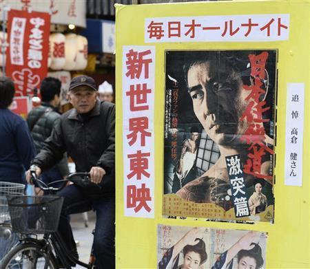 東映は各地の直営映画館や撮影所に献花台を設置した。大阪・新世界では任侠映画時代の健さんのポスターに、道行く人が足を止めた。ギラギラとした眼光が鋭い。