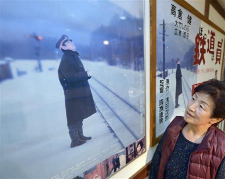 映画「鉄道員(ぽっぽや)」のロケ地となった北海道南富良野町のJR根室線幾寅駅にも健さんのポスターが飾られた。雪の線路際に立つ。これほどこのシーンに似合う俳優はいない。