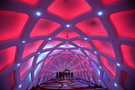 City of Dreamsのトンネルになります。どこに迷い込んでしまったのか?と入った瞬間に驚かされるデザインです。色が赤や青に変わるので舞台撮影と同じように、露出が安定しません。瞬時に変えるようにするといいでしょう。