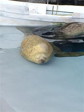 見ているだけで、こちらも顔の筋肉がゆるんでしまうアザラシのリラックスした表情をおさえてますね。手前の水面を大きく入れてしまってますが、水槽の中だと分かるくらいの幅でいいので、もう少しカットしてもよかったでしょう。<今回の読者:千葉県市川市 川名克幸さん、タイトル「マッドアングラー」>