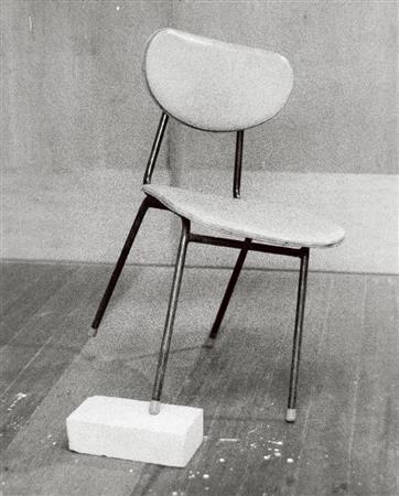 さらに、「複合体(椅子とレンガ)」では、傾いた椅子が「座れる」という機能をなくし、その下のレンガも本来の用途に使われず、どちらも名付けようのないモノに変化する。いかに言葉とモノの関係は危ういものかを暴いてみせた。