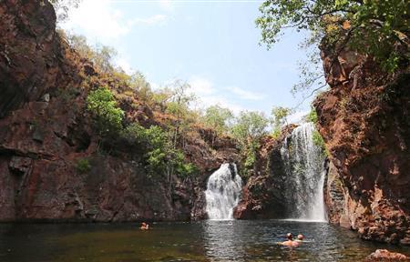 ダーウィン周辺の自然を堪能できるのが街から車で約1時間の「リッチフィールド国立公園」だ。道中、野生のワラビーに遭遇し、道路脇の岩に見えるアリ塚に目を奪われるなどした。