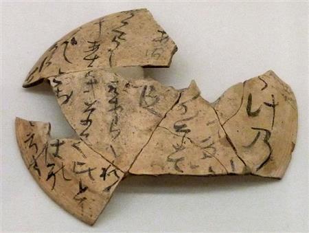 京都市の平安京跡では2011年に、貴族の藤原良相邸宅跡で最古級の平仮名を記した土器片(9世紀後半)が出土。判読が困難で意味がよく分かっていなかったが、勅撰和歌集「古今和歌集」にある「幾世しも」の歌-とする新説が発表された。文字の練習に和歌を書いたとみられ、平仮名の成立過程を知る手掛かりになりそうだ。(SANKEI EXPRESS)