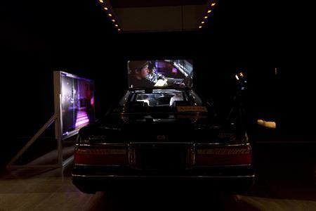 被写体だけでなく、鑑賞者が主役になる作品もある。「ドライブ・イン・シアター」だ。鑑賞者が車(タクシー)の運転席に乗り込むと、車の外側に設置されたカメラが鑑賞者を撮影。カメラと反対側のモニターでは車窓の映像が後方へ動き出す。そして気がつくと、車の正面にはられた大きなスクリーンに、まるで鑑賞者自身が車を運転して走っているような映像が映し出されるのだ。