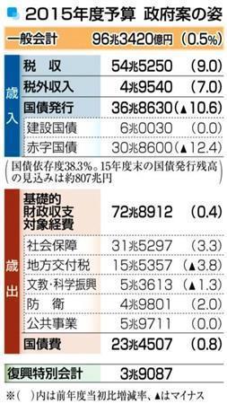 【2015年度予算案】96.3兆円 地方・成長・財政見据え