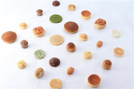 お菓子の詰め合わせをすべて袋から出して白い紙の上に並べてみました。間隔を同じくらいにして撮りましたが、ぎゅっと集めて隙間のない状態で撮るのも面白いでしょう。できれば後ろの紙は和紙の方が和菓子には相性が良いですね。