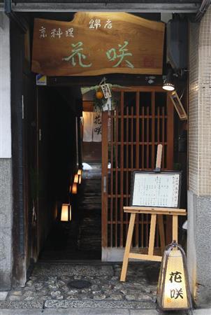 買い物客でにぎわう京の台所、錦市場や大丸、高島屋などの至近に立地する京料理の館、「花咲 錦店」。玄関に誘う神秘的なトンネルをくぐると、そこは異次元のグルメの世界。生麩(なまふ)や湯豆腐、一風変わったすしでもてなされる会席料理は、訪れる旅人に京都テイストを堪能させてくれるはず。冬の庭にはサザンカの赤い花も咲き、心安らぐひとときを演出してくれる。