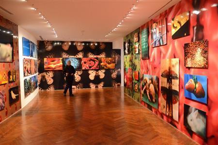 記者たちへの内覧会が行われた1月22日、原美術館の入り口には赤や黄の鮮やかな花が並んだ。芸能人から贈られた花も交じり、目もくらむ蜷川の原色カラー作品を賛美しているかのように見えた。しかし、展覧会そのものは予想に反して、色彩より陰影に満ちていた。