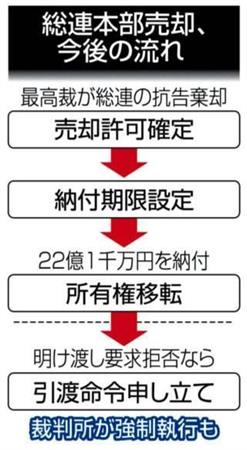 朝鮮総連関係者によると、許宗萬(ホ・ジョンマン)議長らが昨年末、関西地方の在日資産家らを回るなどして20億円前後のカネを工面したとされる。1月末には都内の拠点の朝鮮出版会館が約17億円で売却された。香港からの入金を加えると、本部転売額に達する計算になる。