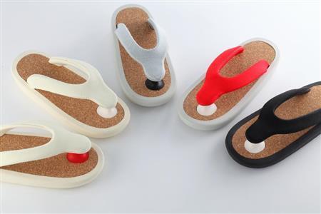 ゴム製のビーチサンダルは、これらの部分が硬いために、長く履くとどうしても足が擦れて痛くなってしまう。道具としてのこだわりはここだけにとどまらない。ゴム底には自動車タイヤと同じ素材を使用。さらに、足裏があたる部分には絶妙な弾力感をもつ特殊コルクを使い、都会のアスファルトを長時間歩いても足に負担をかけないようにした。草履を知り尽くしているからこそ実現できた匠の技だろう。加えて世界市場を見据えた印象的なデザインは、広い世代に強く訴えかける力をもつ。案の定、海外のファッションに敏感な層の興味を引き、近々、フランスでも販売が始まる予定だ。JOJOは「和」の持つ快適さや美しさを改めて世界に伝える役目を果たしそうだ。