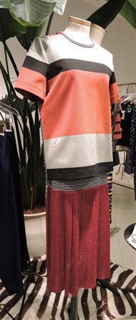 シンプルなシルエットのプリーツスカートは、1枚持っていれば、トップスの組み合わせ次第でコーディネートが完成できる。シンプルなシルエットのタイトスカートにはスリットが入るなど、ひねりの効いたデザインも特徴の一つだ。幾何学模様のワンピースは派手な印象ながら、実際に着れば大人っぽい上品さが演出できる。