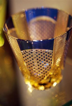 カットされた部分は本来、美しく手磨きされていて透明ですが、オレンジ色のライトがグラスを照らして黄金色に輝いていたので、金色に近いように設定しました。ホワイトバランスはオートよりも曇りや日陰にする方が黄金色になるので、曇りに設定しました。