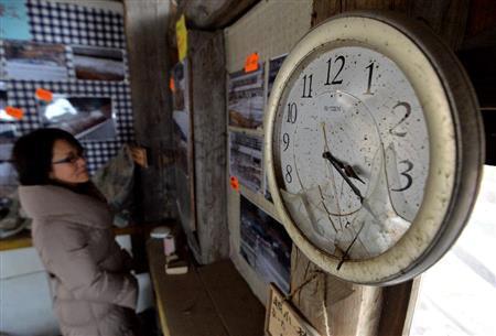 震災前は繁華街だった岩手県大船渡市越喜来(おきらい)地区の一角。がれきでできた風変わりな建物がたたずむ。大津波資料館「潮目」。地元で土木業を営む片山和一良(わいちりょう)さん(63)が2年半前、個人的に作った。電気もない質素な館内には、当時の写真や津波到達時刻で止まった時計などが置かれている。