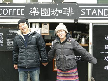 ハミングに参加した、天草を拠点に移動コーヒー販売「楽園珈琲」を営む本山秀樹さん(47)と美和さん(42)夫妻はともに県外出身。秀樹さんは天草発着の航空会社、天草エアラインの整備士だったが、病気で療養。大好きなコーヒーも止められたが、「自分で選んだ豆を自家焙煎して試したら、大丈夫だった」ことからライトバンでの移動販売業に転身した。いずれ大好きな天草で店を構えたいという。