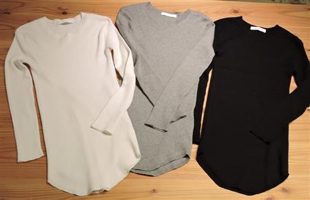 素材は伸縮性があり、着心地は抜群だが型崩れしない。ベーシックでいながらトレンド感があるのは、佐々木さん自ら着て裁断するカッティングの妙にある。