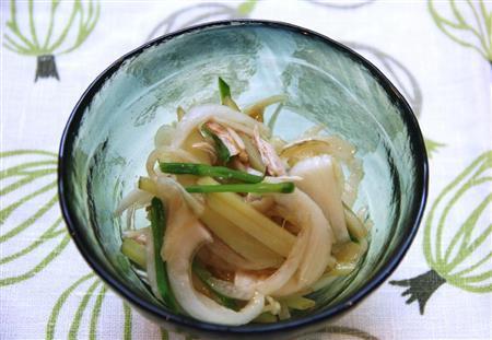 ☆新玉ねぎがない場合は、普通の玉ねぎを薄切りにして、水にさらして使う。