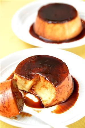 プリンは昔なつかしの焼きプリン。トロトロやわらかのプリンが流行ですが、私はかっちりした味わいのプリンが好き。卵黄を普通の配合よりも多くしているのがポイントです。カラメルもしっかり苦い大人向け。お子さんには、火を入れる時間を短くして苦さを調整してあげてください。