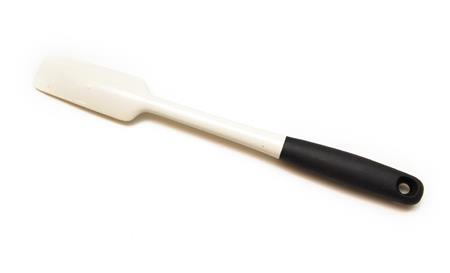 シリコンのスパチュラはスクランブルエッグ作りだけでなく炒め物やお菓子作りに便利。私はOXO(オクソー)製を使用していますが、他にもいろんなところで販売されています。形も先端が斜めのものだったりさまざまですが、平たいものが使いやすいです。