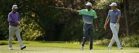 大会前日の練習ラウンドで実は、この3人が一緒に回った。水切りショットに興じるなど、ウッズの楽しそうな笑顔が印象的だった。