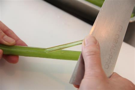 選ぶポイントは、葉がついている場合は、みずみずしく、茎に傷のないこと。茎が太すぎると繊維が硬いので、直径1~2センチくらいのものがよいようです。葉は落とし、乾燥しないよう野菜袋などに入れて冷蔵庫の野菜室で保存します。