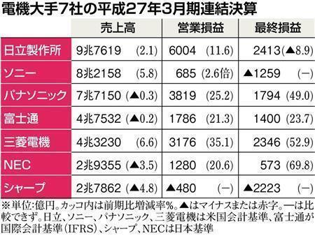 日立・三菱は最高益 パナ・ソニー復調 電機7社 3月期決算