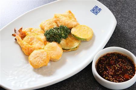 「ジョンの盛り合わせ」とは「卵につけて焼いた、いわば“ピカタ”のような料理」(石さん)だ。皿にはエビ、ホタテ、白身魚や、輸入したという韓国カボチャが盛られ、その上にパセリが添えられている。いずれもほんのりと塩で味付けされ、まろやかな甘みも感じさせる優しい味覚だ。