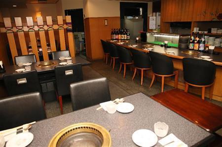 韓国焼酎やマッコリのほか日本酒、ワインも取りそろえる。店内はカウンターとテーブル席で、焼き肉は目の前の炭火で焼く。