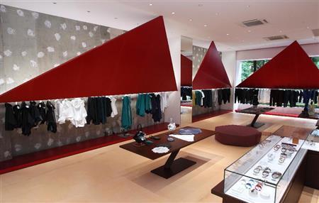 4月にオープンした「ISSEY MIYAKE MARUNOUCHI」はJR東京駅前、郵船ビル1階の一画にある。空間デザインは吉岡徳仁が手がけ、内装は赤いトライアングルをモチーフに、歴史と未来のコントラストを表現している。連日、午前11時の開店前から長蛇の列ができ、地方から訪れる観光客や外国人も多い。近隣に本社を構える大企業のビジネスパーソンなどもよく足を運んでいるという。