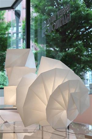 谷崎潤一郎が「陰翳礼賛」に記した陰翳の濃淡のあやがもたらす繊細なあかりのニュアンスにヒントを得てつくられた「陰翳 IN-EI ISSEY MIYAKE」はイタリアのアルテミデ社が製品化した照明器具。「132 5.」を開発する過程で、衣服に限定することなく幅広いデザインの可能性を探る試みが実を結んだ。ベースには「影」に対する日本の伝統的な美意識がある。