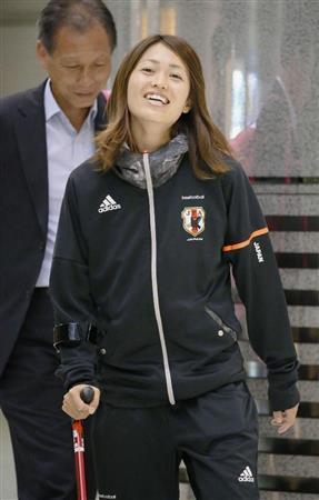 安藤は報道陣への対応はなかったが、つえをついて出発口に向かう表情は明るく、声を掛けられると笑顔も見せた。6月8日のスイスとのW杯1次リーグ初戦で相手GKと交錯して負傷し、帰国して手術を受けた。