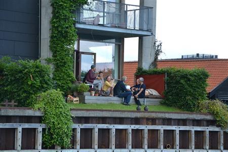 途中、カヌーを楽しむグループに何度も遭遇。また、岸辺やボートで一杯楽しんでいる人々が「乾杯!!」と陽気な声を掛けてもきた。誰もが水辺の生活を楽しんでいた。