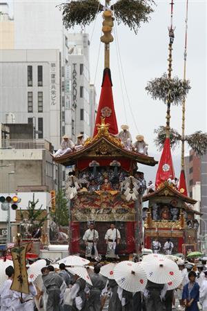 山鉾巡行の実施については17日午前4時から、祇園祭山鉾連合会理事が集まって対応を協議。全員が「実施すべき」という意見を表明し、4時20分の気象庁からの情報提供をもって最終決定したという。
