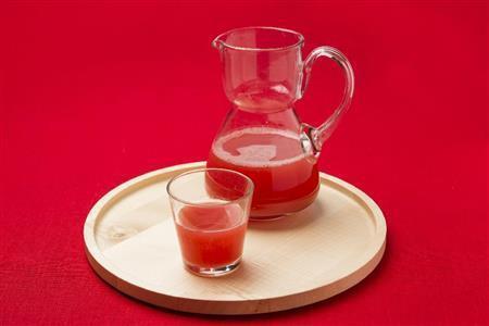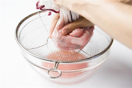 〔2〕麻や木綿の布巾に包みジュースを絞る。好みで味をみて、上白糖と少量の塩をかくし味で加える。