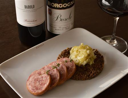 豚肉のうまみが詰まった独特のサラミ「コテキーノ」。レンズ豆を添えるのが一般的だ