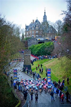 - 乗車できないような急勾配の坂道で、選手たちは自転車を肩に担いで前に進む=2013年12月22日、ベルギー(田中苑子さん撮影)更新