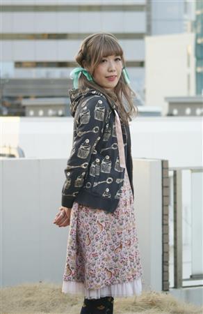大好きな「エミリーテンプルキュート」を身にまとった大石蘭さん。「エミリー~」はガーリーなデザインが人気のファッションブランド=2014年3月11日、東京都渋谷区(塩塚夢撮影)