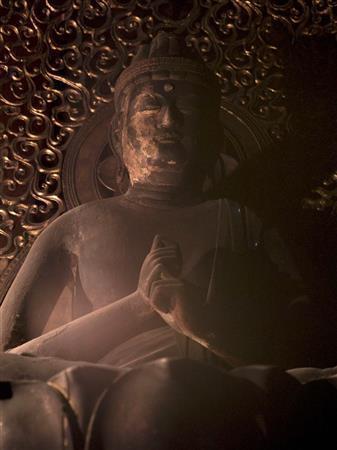 - 平安時代後期の「木造_大日如来坐像」。現在は金堂に安置されている=2013年7月22日、滋賀県大津市・三井寺(井浦新さん撮影)更新