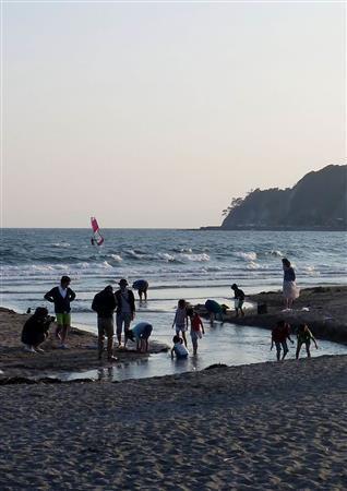 滑川河口の由比ガ浜海岸=2014年5月4日、神奈川県鎌倉市