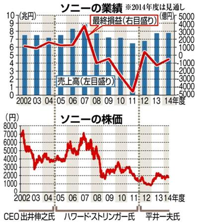 ソニーの業績/ソニーの株価(2002年度~2014年度)=2014年5月14日発表、※2014年度は見通し