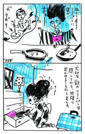 簡単で便利な亀の子束子(たわし、イラスト:平松昭子さん提供)。http://kimonosnack.blogspot.com