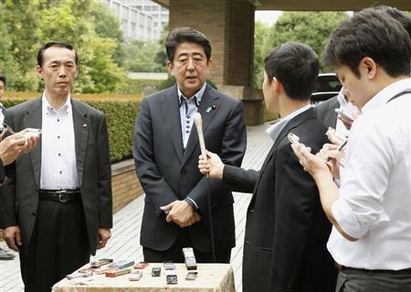 - 北朝鮮の弾道ミサイル発射を受け、報道陣の質問に答える安倍晋三(しんぞう)首相=2014年7月13日午前10時48分、首相公邸(共同)更新
