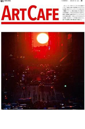 太陽が大通りの延長線上のビルとビルの谷間に沈む「マンハッタンヘンジ」が見られた=2014年7月11日、米ニューヨーク(ロイター)