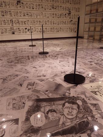 - 第2期の土田(世紀)作品を紹介した展示室。描きまくった時代を表現するため、床から壁までマンガ原稿で埋めつくされている=2014年7月11日(提供写真)更新