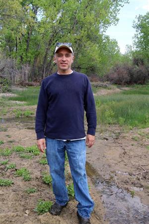 - 自家農園「スリー・リーフ・ファーム」敷地内の水源地に立つラニー・マルティネリさん。農園は昨年9月にコロラド州を襲った大洪水で甚大な被害を受けたが、そのときに地下水の流れが変わったらしく、敷地内の低地に水が湧き出すようになった=2014年5月18日、米コロラド州ボルダー郊外(ディスカバー・アメリカ撮影)更新