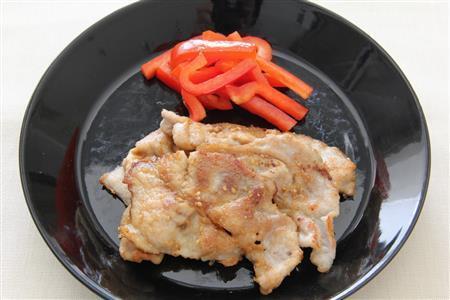 - 豚肉のごま風味焼き(作り方1)__フライパンにサラダ油を熱し、塩・こしょうを振って小麦粉をまぶした豚肉を焼く。あいているところにパプリカを入れ、一緒に焼く(田中幸美撮影)更新