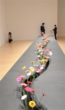 - 入館者が花を持ち帰り、見知らぬ人に贈る「ひろがる花園」=2014年9月19日、東京都港区(原圭介撮影)更新